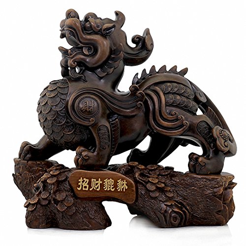 Large Size Wealth-Attracting Feng Shui Rosewood Color Pi Yao/Pi Xiu Statue, Best Housewarming Congratulatory Gift