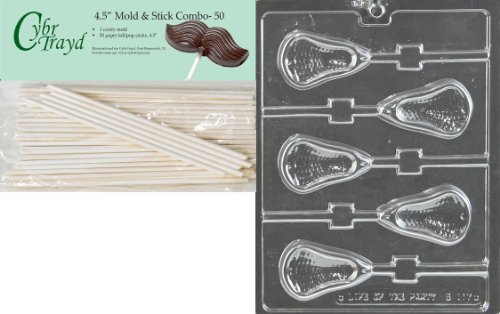Cybrtrayd Large Lacrosse Lolly Chocolate Candy Mold with 50 Cybrtrayd 4.5-Inch Lollipop Sticks