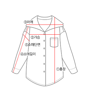 사이즈 ①총장(앞) ①총장(뒤) ②가슴 ③어깨 ④소매길이 ⑤소매단면