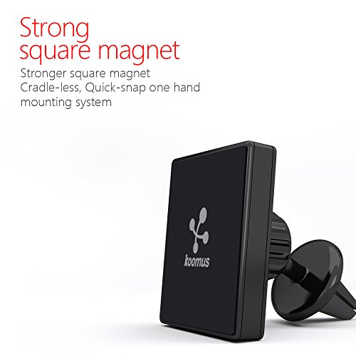 -. Binding : Wireless Phone Accessory -. Brand : Koomus -. Color : Black -. EAN : 0813189020260 -. Feature : Universal Smartphone, Cellphone mount compatible with all devices. / Cradle-less, hassle free Easy Quick-snap one hand mounting system. / SuperThin Steel Insert Plate provides extra strong magnetic attachability to mount. / Quick and Easy installation, no tools required / Can be installed on all types of air vents; horizontal, vertical and round shapes. -. Label : Koomus -. Manufacturer : Koomus -. Model : Magnetos Air Vent -. MPN : Magnetos Air Vent -. PackageQuantity : 1 -. PartNumber : Magnetos Air Vent -. ProductGroup : Wireless -. ProductTypeName : WIRELESS_ACCESSORY -. Publisher : Koomus -. Studio : Koomus -. Title : Koomus Magnetos Universal Air Vent Magnetic Cradle-less Smartphone Car Mount Holder for all iPhones and Android Devices -. UPC : 813189020260 -. Warranty : Manufacturer warranty for 1 year from date of purchase.