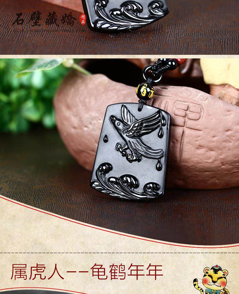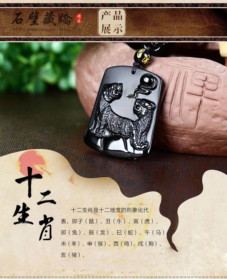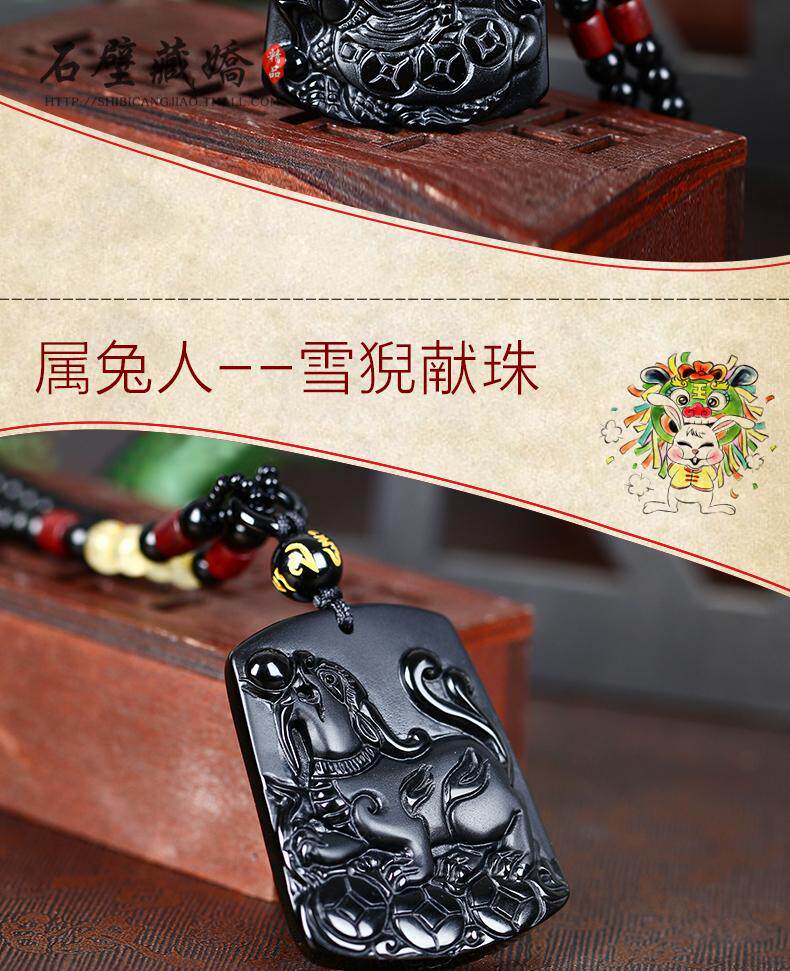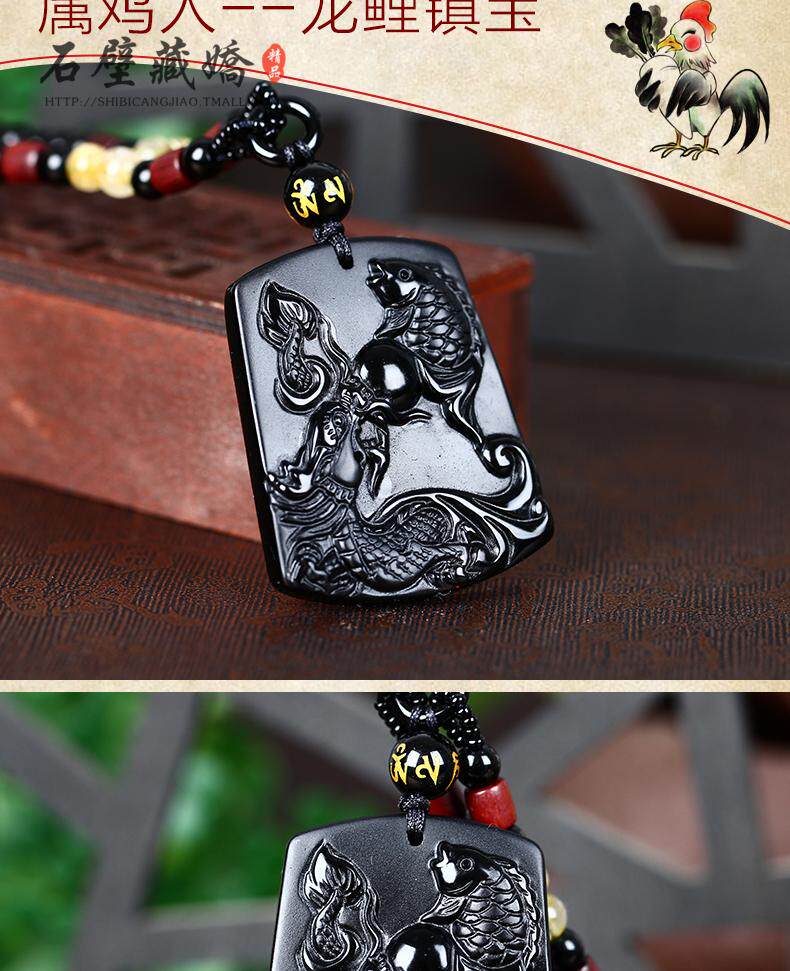 开光12生肖属鸡龙鲤镇宝黑曜石吊坠化太岁开运吉祥物男女