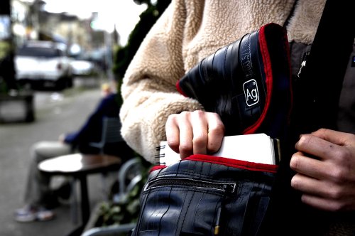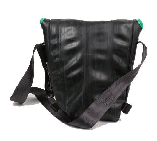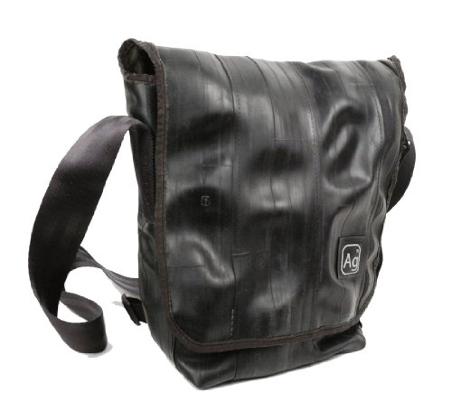 -. Binding : Sports -. Brand : Alchemy Goods -. Department : unisex-adult -. Feature : Durable, water-resistant messenger bag / Exterior is made from upcycled bicycle inner tubes / Shoulder strap made from an upcycled seatbelt / Features zippered exterior pocket, interior pocket, and pet slots / Measures 10 inches by 6 inches by 11 inches -. Model : Haversack -. ProductGroup : Sports -. ProductTypeName : OUTDOOR_RECREATION_PRODUCT -. ReleaseDate : 2011-09-22 -. Title : Alchemy Goods Haversack Messenger Bag, Made from Recycled Bike Tubes