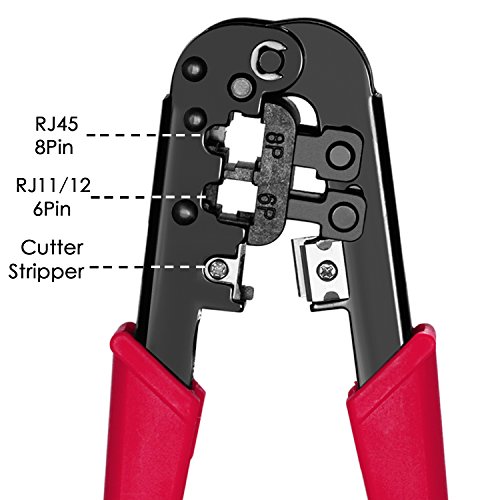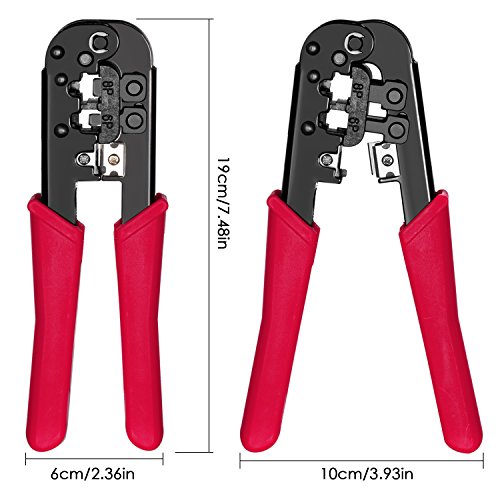 - DIFFERENT FUNCTIONS: Wire Tester is used to detect RJ45 RJ11 RJ12 handsets and network cables, it can tell you how to use with a detailed instruction manual; Crimping Tool is professional, strips and cuts cable for Any Ethernet or Telephone Cable - 8P/RJ-45 and 6P/RJ-12, RJ-11; Wire Stripper Cutter: Adjustable stripping blade for different insulation thickness, prevents damage of shielding