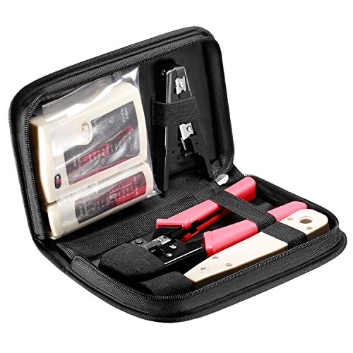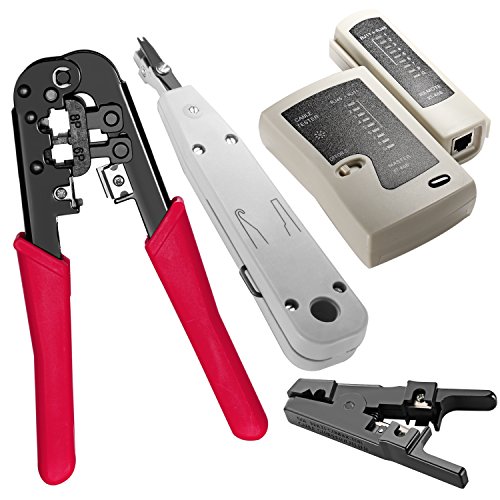 - KIT INCLUDES: (1)8P 6P Dual-Modular Crimping Tool with Crystal Head, (1)Wire Stripper, (1)Cable Tester, (1)Punch Down Tool and (1)Tool Bag