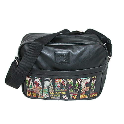 -. Binding : Apparel -. Brand : B. Designs -. Department : mens -. Feature : Measures 14.5 x 4.5 x 11.25 inches / Top zipper closure main compartment / Exterior features 1 front full length slip pocket with fabric hook and loop closure and cut-out of Marvel word with contrasting color comic print lettering / Interior has 1 9.5 inch zipper pocket and comic print nylon lining -. Label : Marvel -. Manufacturer : Marvel -. PackageQuantity : 1 -. ProductGroup : Apparel -. ProductTypeName : ACCESSORY -. Publisher : Marvel -. Studio : Marvel -. Title : Marvel Comic Logo Messenger Bag