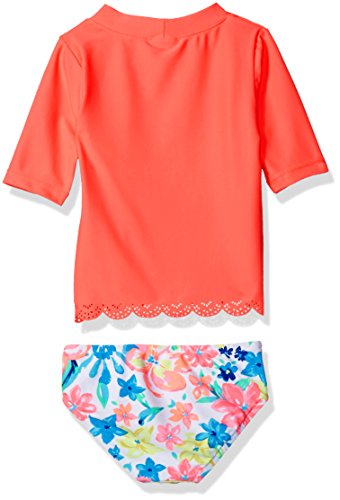 Rash guard top with scalloped hem and heart detail and printed bottoms