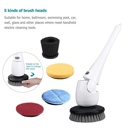 - 5 Super Scrubber head: This scrubber includes 5 Spin brush heads, extension arm and charger. This Spin Scrubber brush heads can be used indoor and outdoor. This scrubber has a Cordless feature which makes bathroom cleaning more convenient and hassle-free.