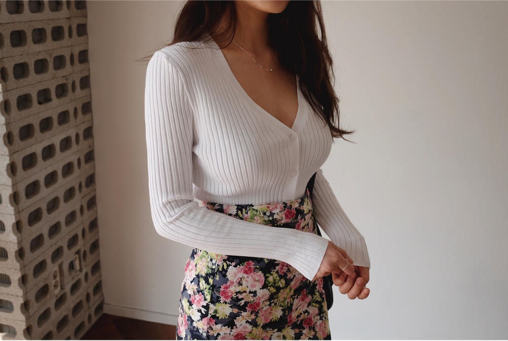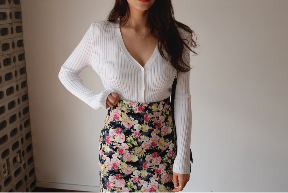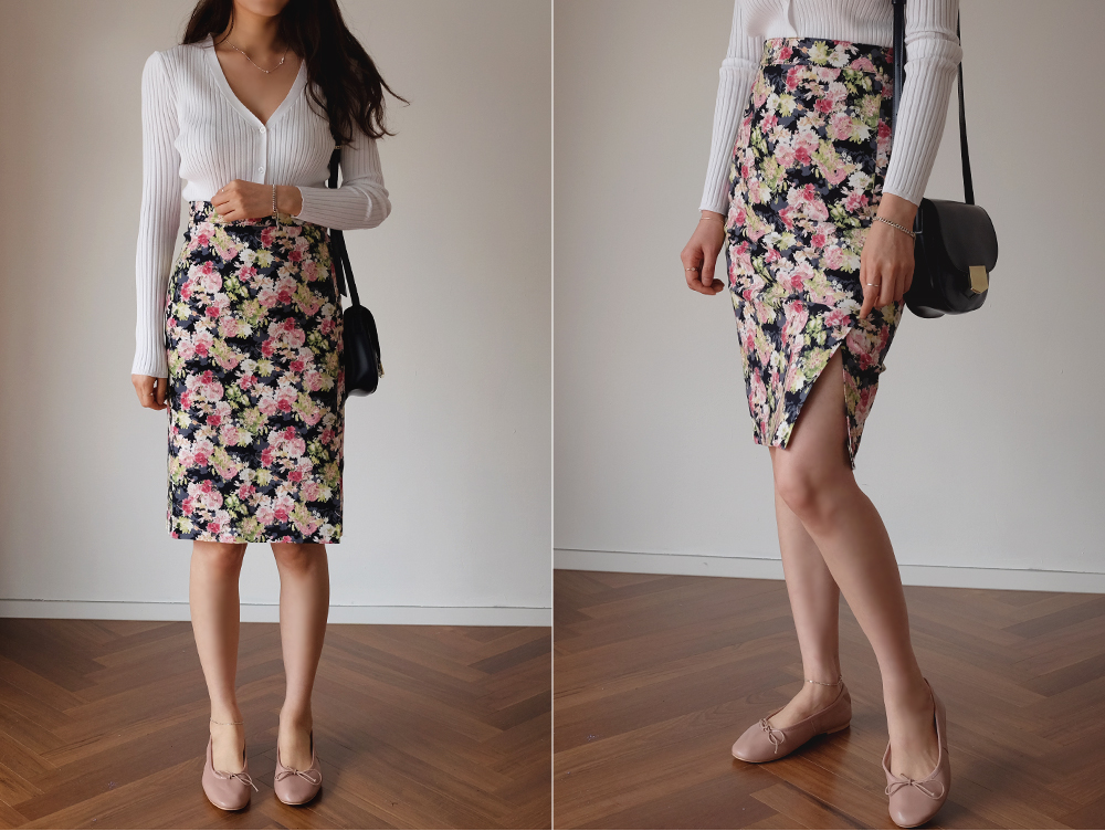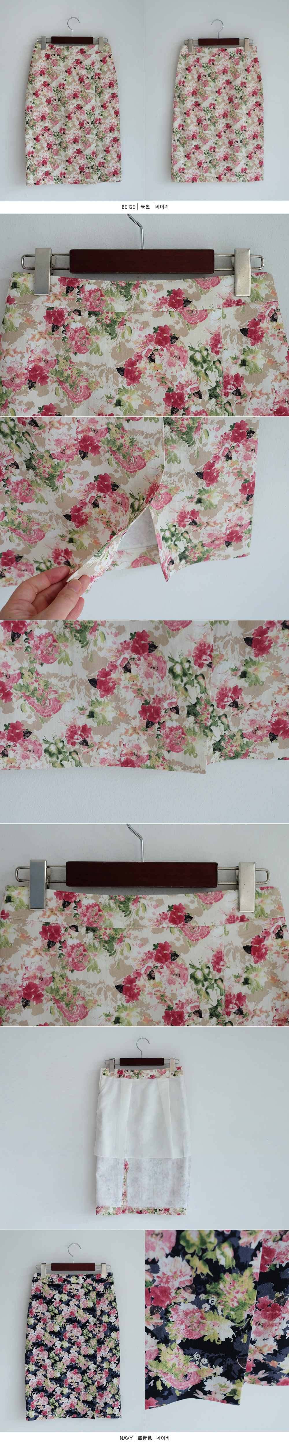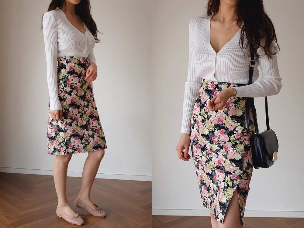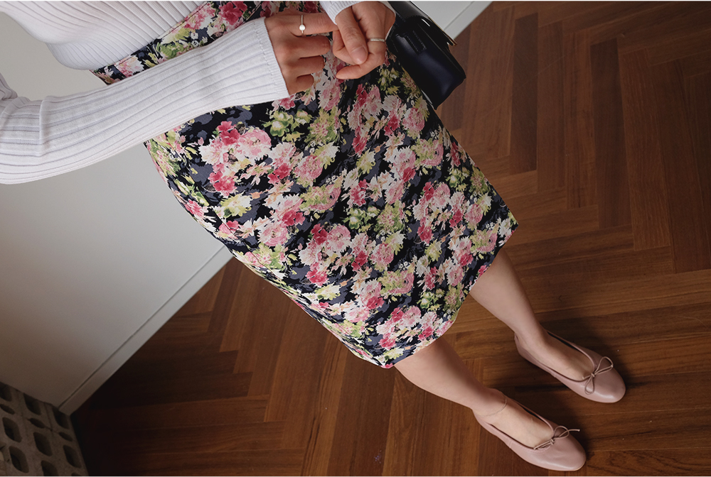 플라워 미디 트임 스커트