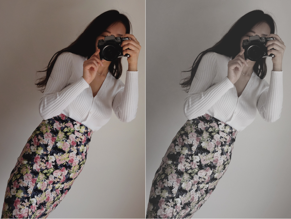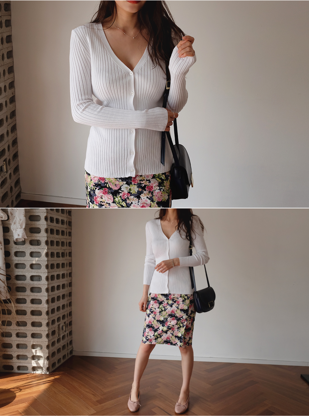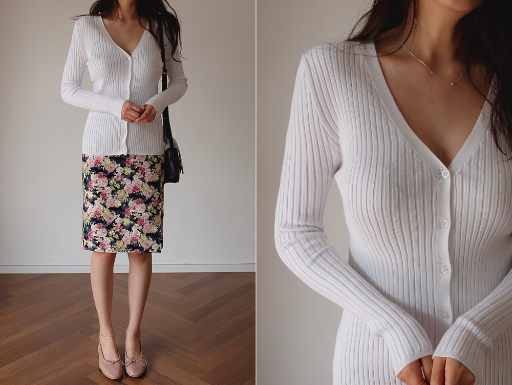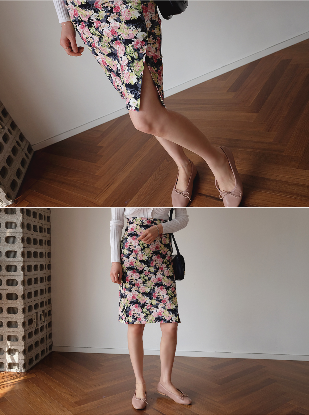 프론트 밑단의 과하지 않은 슬릿디테일로 포인트를 주어
