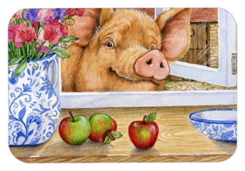 Caroline's Treasures CDCO0352JCMT "Pig trying to reach the Apple in the Window" Kitchen or Bath Mat, 24" H x 36" W, Multicolor