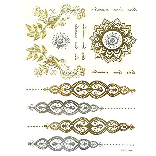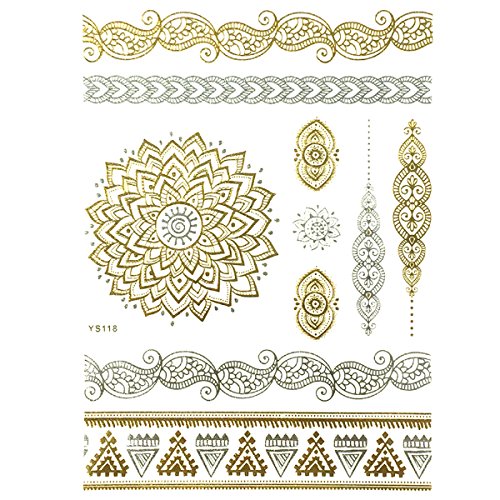 Get noticed with these beautiful and exotic temporary tattoos. Exquisite body art that is celebrity inspired, the tattoos can be used in place of jewelry. Available in metallic gold, silver, and black colors in a number of designs and patterns. Great for wearing at the beach / poolside, while clubbing, or to special events.