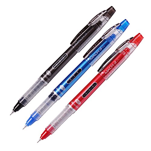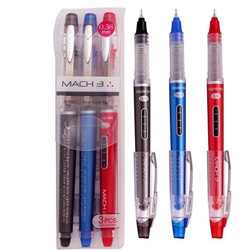 -. Title : Morning Glory Mach 3 Roller Ball Pen - 0.38 mm-Fine Point Tip (Pack of 3 Pens) Black,Blue,Red
