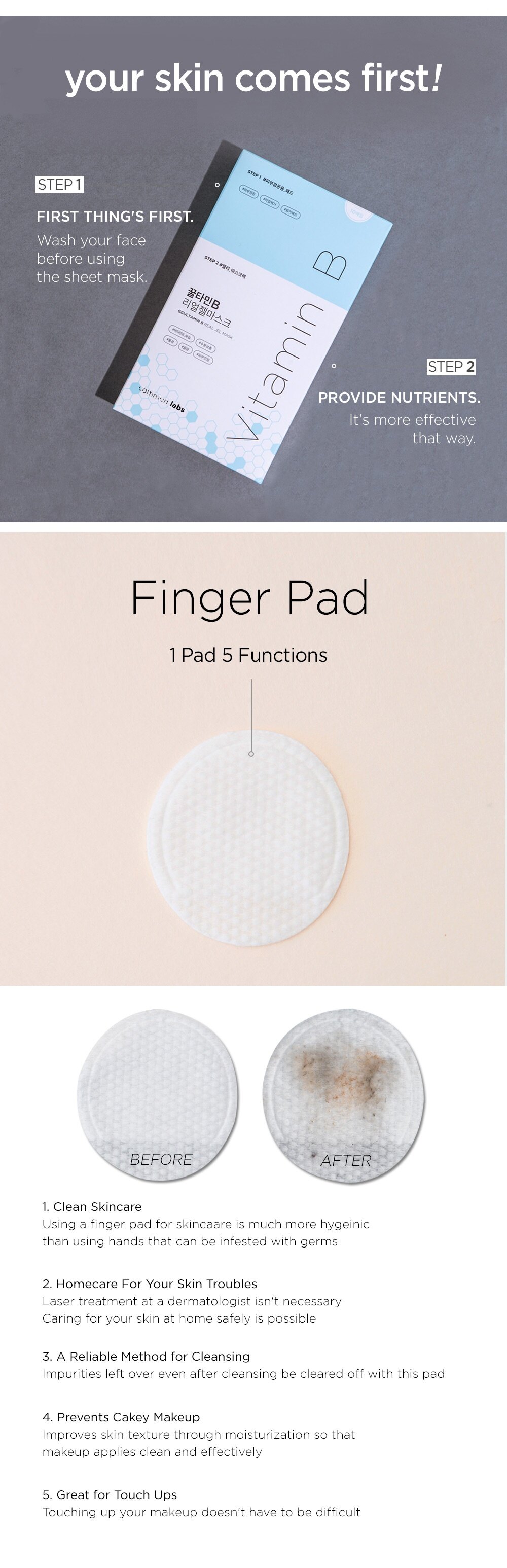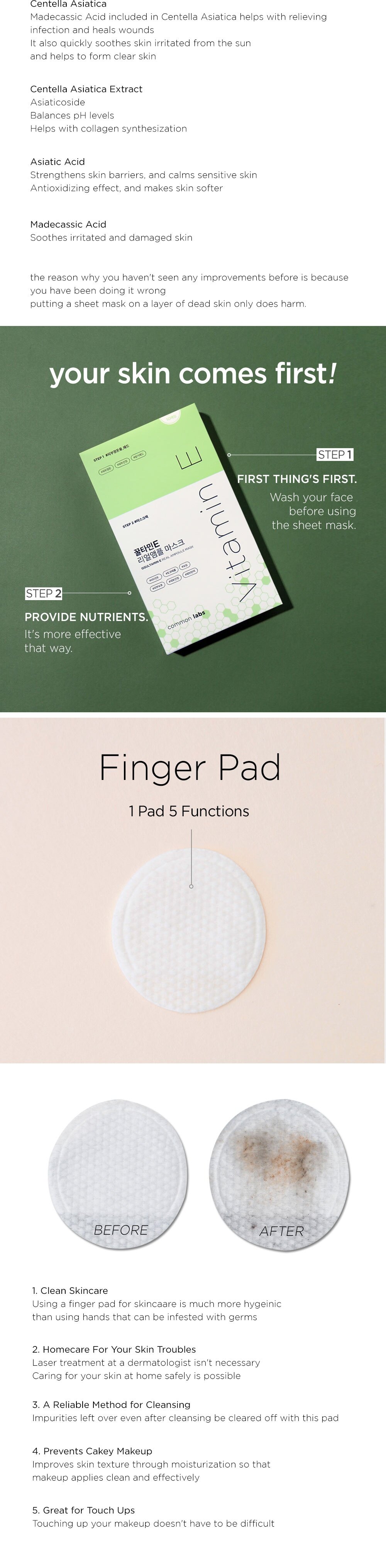 Customers who feel sheet masks don’t work for them – Putting a sheet mask on a layer of dead skin only does harm. That’s why we offer a finger pad to get rid of dead skin so that nutrients from the sheet mask can sink deep into your skin.