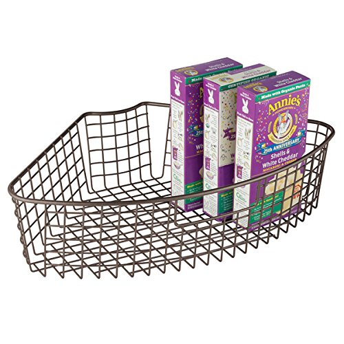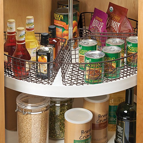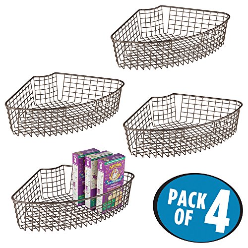 mDesign Lazy Susan Wire Storage Basket with Handle for Kitchen Cabinets, Pantry - Pack of 4, 1/4 Wedge, Bronze