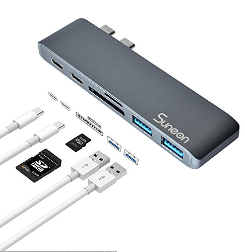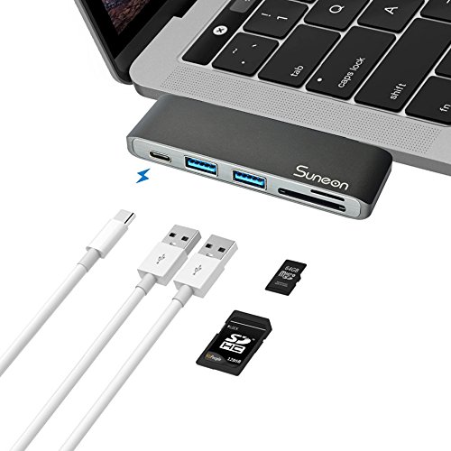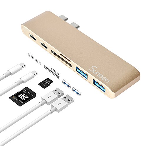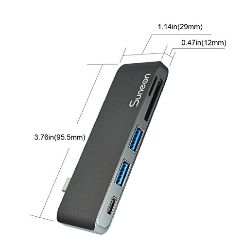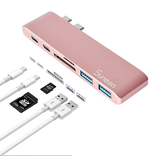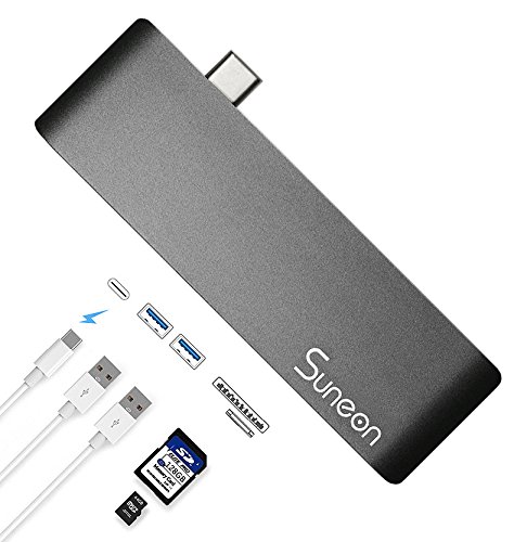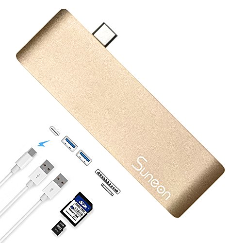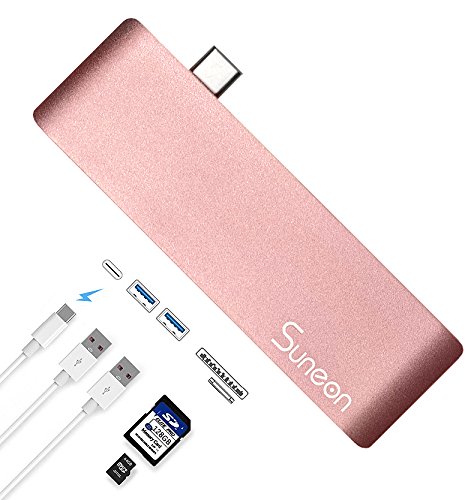 SUNEON Aluminum Thunderbolt 3 USB Type-C Hub Multi-Port Adapter with USB-C Charging Port, Type-C Pass Through, 2 USB 3.0 Ports, SD/Micro Card Reader Colorful Design: The aluminum USB C Hub is the perfect complement to Apple computers and accessories. The elegant Type-C Pass Through USB Hub is available in Space Gray, Silver, Black, Rose Gold and Gold.