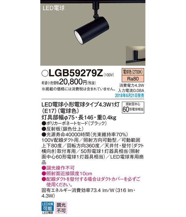 ●光源:LED電球小形電球タイプ4.3W1灯(E17)(電球色)、色温度:2700K、光源寿命40000時間(光束維持率70%)