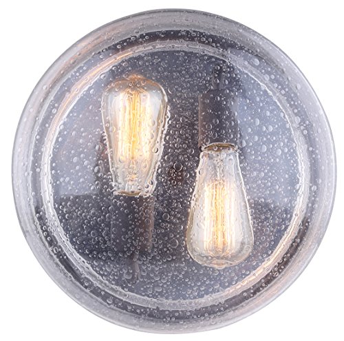 Canarm ltd style mill IFM623A12ORB 2 bulb light flush mount Oil Rubbed Bronze with seeded glass -the mill Collection in a simple, transitional design, blends old and new by using vintage bulbs shrouded in contemporary seeded glass globes. Mimicking the effect of light through a rain drop splattered window pane, the mill provides soft, restful illumination. This flush mount light uses 2 60W type a bulbs (not included) and is designed for use with vintage style bulbs. Features the easy connect push-in connection system for easier, faster, safer installation. Great for hallways, entryways, bedrooms and more. Canarm has a long and successful history of supplying lighting and ceiling fans. They work diligently to create a comprehensive selection of styles and designs as well as maintaining high standards of product quality and value.Feature