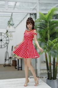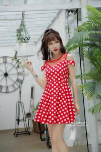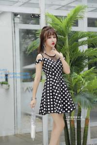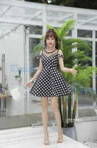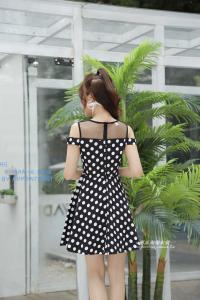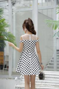 レトロ柄ワンピース ドット柄ワンピース フレアワンピース 半袖 メッシュ シースルー プチプラ ハイウエスト