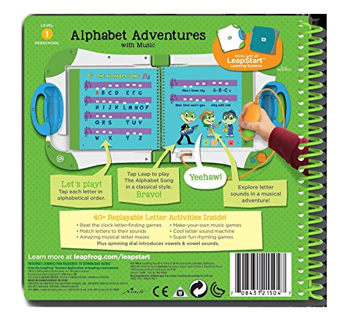 Teaches 14 alphabet and music skills: uppercase and lowercase letters, letter sounds, exploring music and rhythms and more