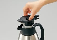 ロック部をつまむだけで簡単にフタを開閉できるので、飲み物をいれたり、お手入れをらくにできます。
