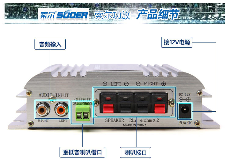 2. Output main channel peak power: 300W +300 W bass peak power: 150W (peak total power 750W)