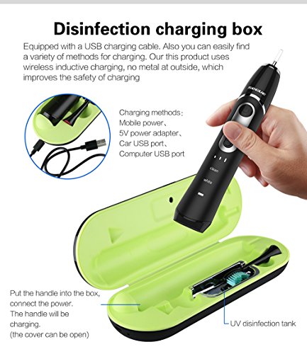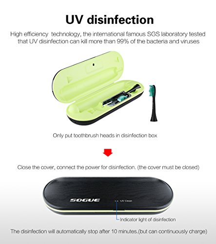 - Sonic toothbrush comes with disinfection box for UV disinfection and USB charging, the disinfection box can kill 99% toothbrush head bacteria. Comfortable cleaning and removes up to 7x more plaque than a manual toothbrush.