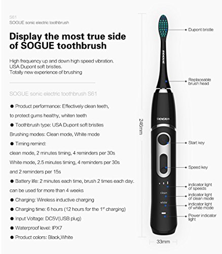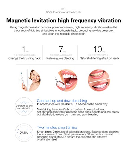 - Our SOGUE sonic electric toothbrush is through strong acoustic vibration to form the cleaning force, high-speed swing, three-dimensional wrapped cleaning teeth, achieve the thorough deep cleaning effect on teeth stains.