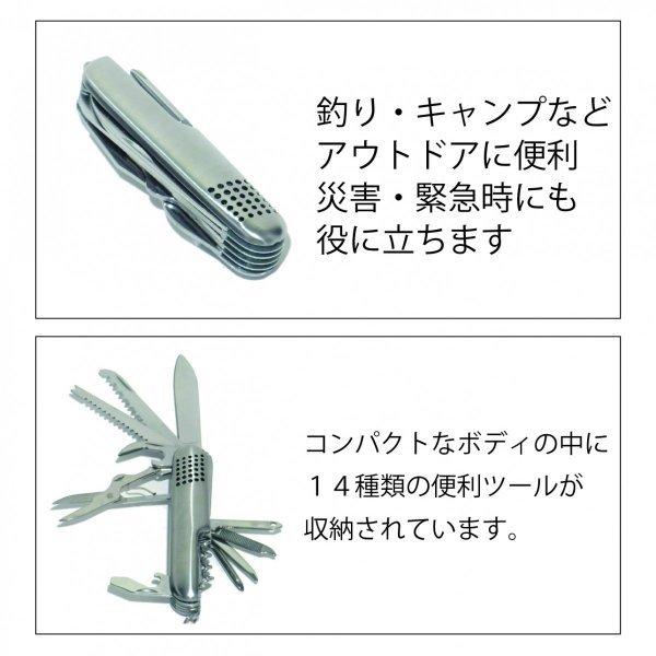 | 備考 | ◆ ご使用前に必ず、破損・ヒビ割れ等がないか確認してからご使用下さい ◆ のこぎり・ナイフを切断物にくい込ませたままこじらないでください。刃を傷める原因になります ◆ コルク抜きは、コンパクトサイズの為、通常品よりも抜けにくいのでコルクを十分に湿らせてからご使用ください ◆ ご使用後は、布等で汚れを拭き取り。各部を折り畳んで収納して下さい。汚れが付着したまま折り畳みますとサビ等の原因になります。 ◆ お子様の手の届かない場所で保管してください ◆ 用途以外には絶対にご使用しないでください ◆ お客様自身の良識にて正しく・安全にご使用ください |