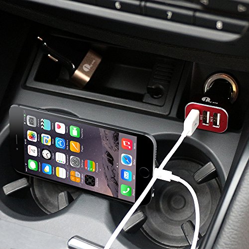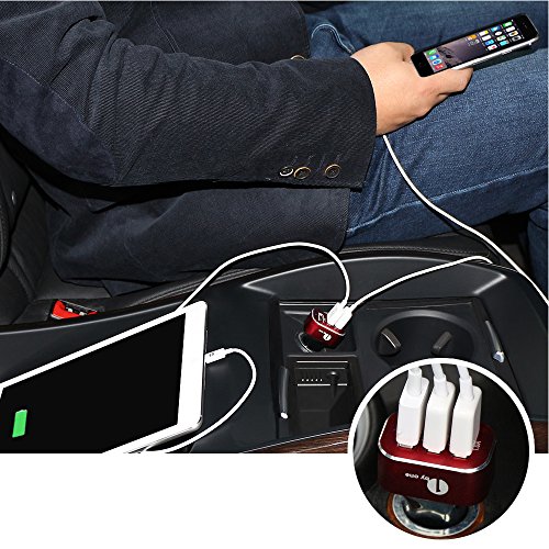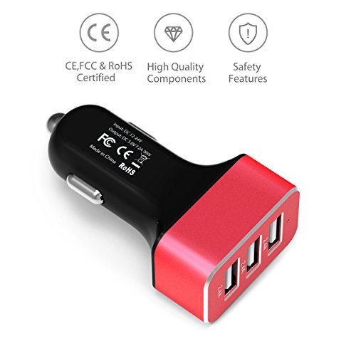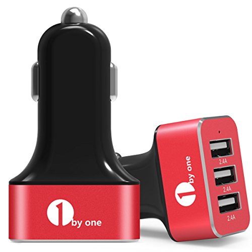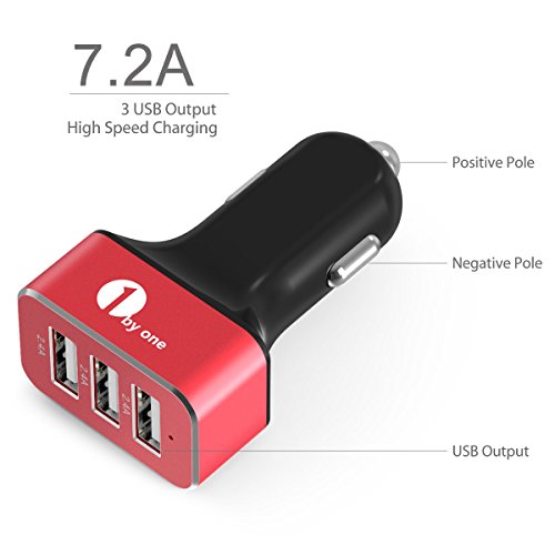 1Byone 7.2A / 36W 3-Port USB Car Charger with Smart IC Chip, Safety Protection for Apple and Android Devices, Red & Black