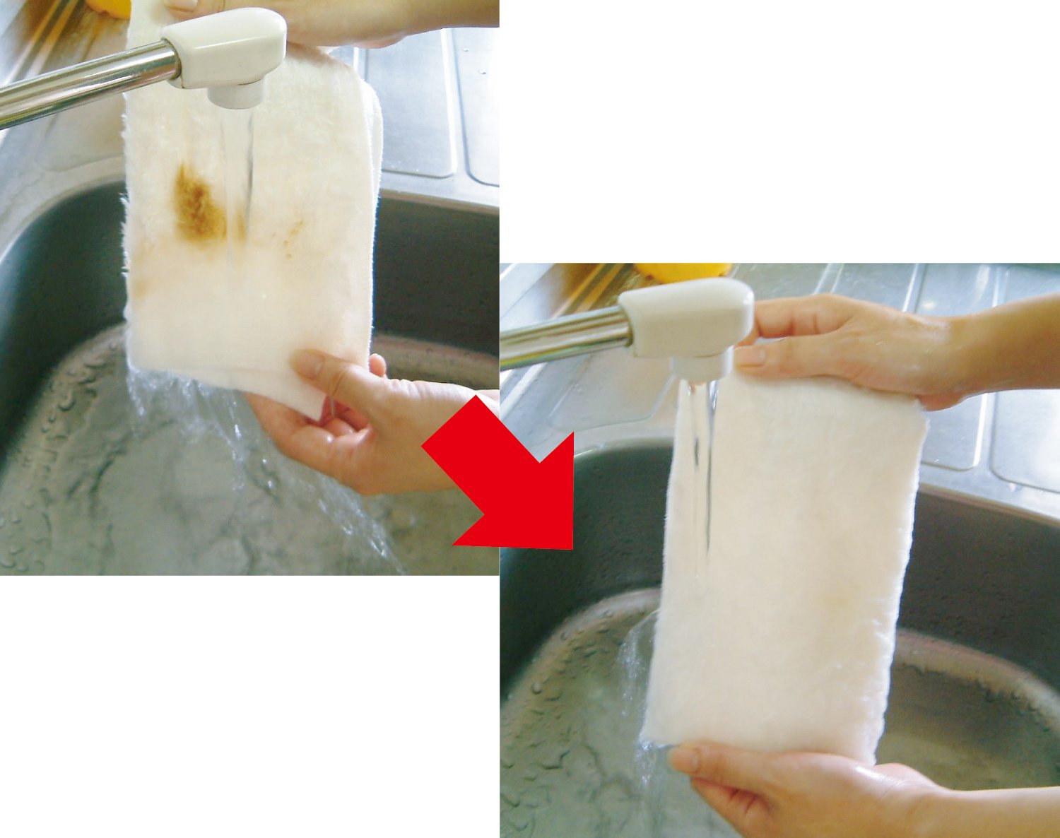 ● Does not use chemicals, fluorescent dyes or anything, it removes dirt without using detergent, so it reduces hand roughness and is economical