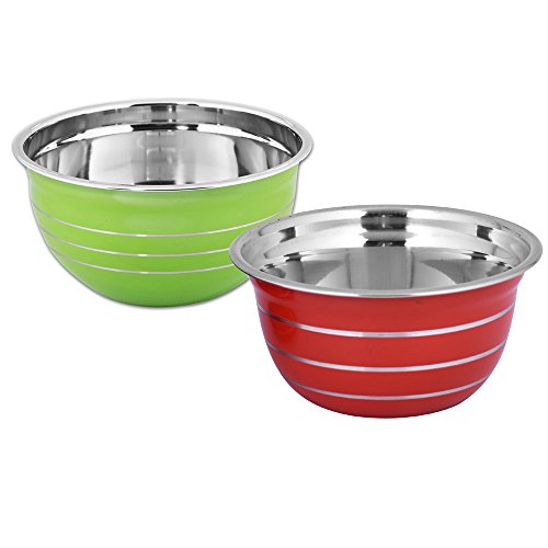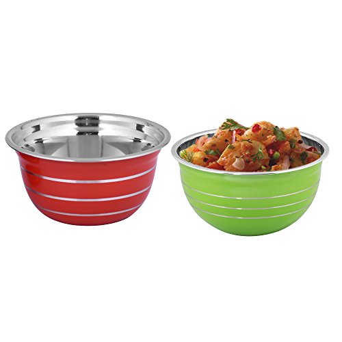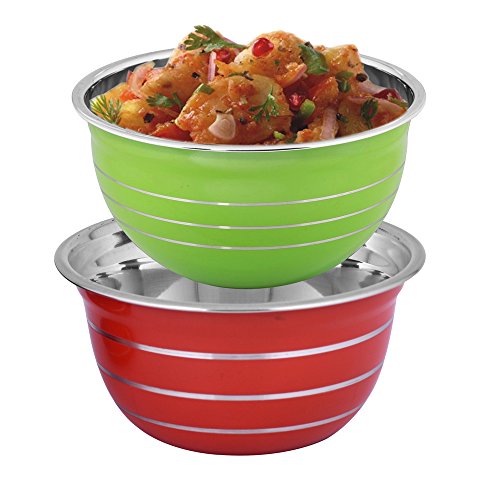Kosma Set of 2 Premium Stainless Steel Deep Mixing Bowls | Salad Bowls in Brilliant colours - 22 cm/3 Litre (Green, Red)