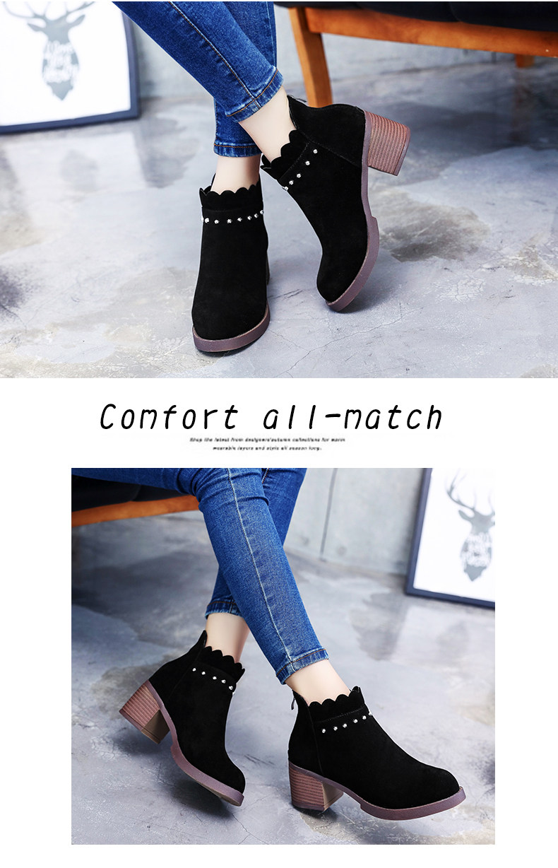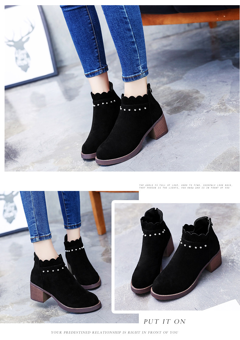 英伦风原宿马丁靴女秋冬季新款高跟短靴踝靴及踝靴百搭学生女鞋子