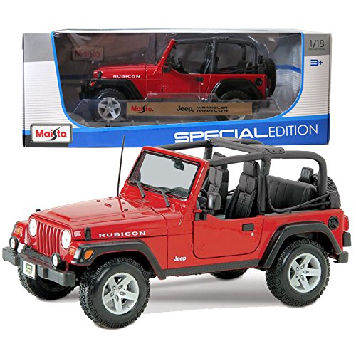 -. Binding : Toy -. Brand : Maisto -. EAN : 0645416669399 -. Feature : Die cast Metal and Plastic Parts / Realistic details with opening hood, front door and tire rack door / 1:18 scale (Car Dimension: 8" x 3-1/2" x 3-1/2") / For age 3 and up -. Label : Maisto -. Manufacturer : Maisto -. ProductGroup : Toy -. ProductTypeName : TOYS_AND_GAMES -. Publisher : Maisto -. Studio : Maisto -. Title : Maisto Year 2014 Special Edition Series 1:18 Scale Die Cast Car Set - Red Color Sports Utility Vehicle JEEP WRANGLER RUBICON (SUV Dimension: 8" x 3-1/2" x 3-1/2") -. UPC : 645416669399