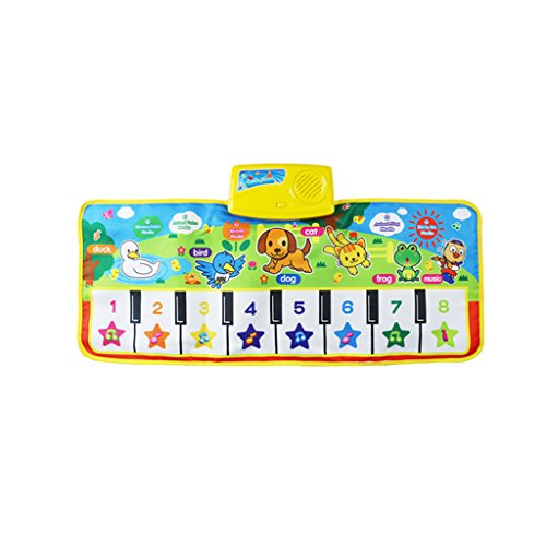 -. Binding : Baby Product -. Brand : MonkeyJack -. Feature : Children can go to the touch, can also use their feet to kick up. By tracking can boost athletic baby's ability. Music will play when the baby touch certain places. Pleasing voice can stimulate the baby's hearing ability / The bright color can stimulate the baby's observation ability. Through music and voice pad can stimulate baby's ability of logic. Crawling can stimulate the baby's coordination ability. Through the image may stimulate hand coordination skills and baby's foot / A great gift for your baby or your friends. Cultivate kids temperament / Powered by 3 pieces AA batteries(not included) / Material: cloth and plastic Color: multicolored -. Label : MonkeyJack -. Manufacturer : MonkeyJack -. MPN : 0958f362525814768x42 -. PackageQuantity : 1 -. PartNumber : 0958f362525814768x42 -. ProductGroup : Baby Product -. ProductTypeName : BABY_PRODUCT -. Publisher : MonkeyJack -. Studio : MonkeyJack -. Title : MonkeyJack Baby's Touch Play Keyboard Musical Singing Gym Carpet Mat Baby Gift