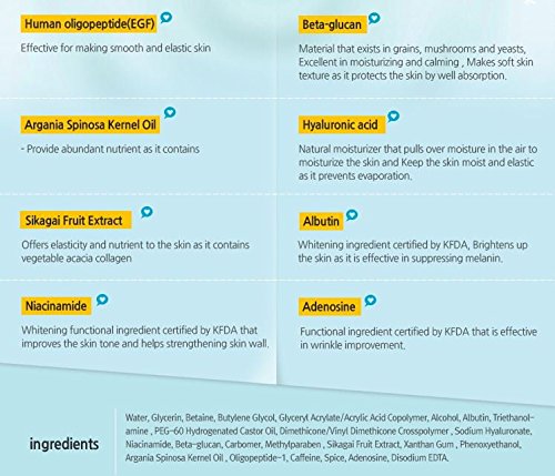 Tightened Face line: Human oligopeptide(EGF) and anti-winkle ingredient offer elasticity to loosen skin as it improves winkles and returns the skin back to be smooth and sharp.