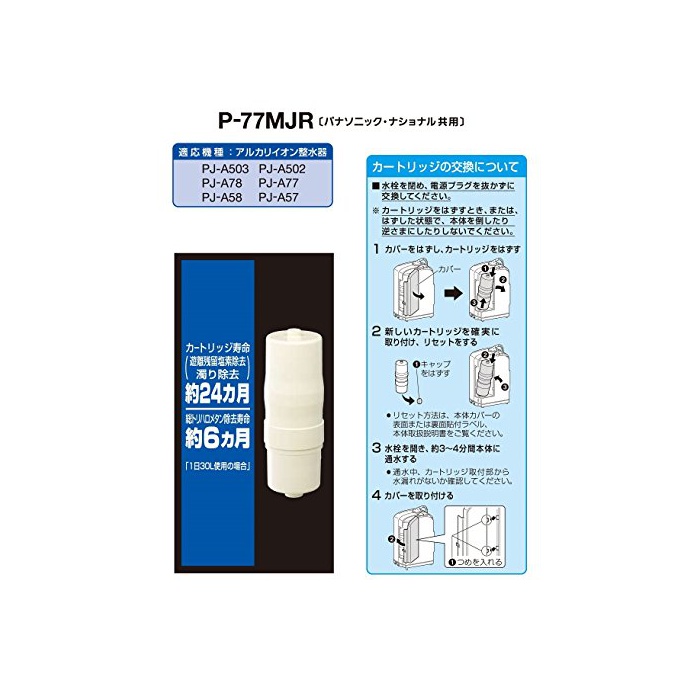 원본상품명: パナソニック 整水器カトリッジ アルカリイオン整水器用 1個 P-77MJR