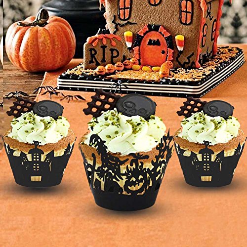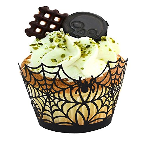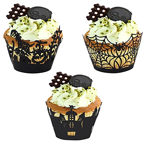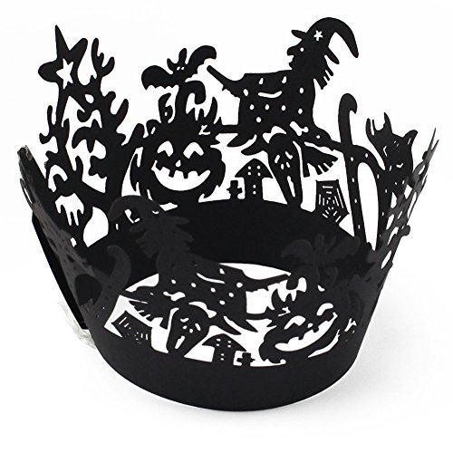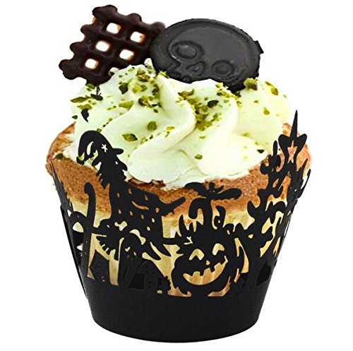 Since Pack of 60 Halloween Spiderweb/Witch/Castle Laser Cut Cupcake Wrappers Liners Party Decorations New Year Christmas decorations (Witch)