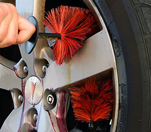 The speed master wheel brush was developed to clean today's intricate wheel designs better than any other brush on the market. The speed master wheel brush was manufactured to my exact specifications, right down to the hot rod red bristles. The speed master wheel brush has a thick, reinforced stem that bends to clean behind spokes and between the wheel and the brake caliper! The bristles are slightly feathered on the ends to gently clean delicate wheel finishes, such as coated or plated wheels, without scratching. I believe this is the ultimate wheel brush. Clean any type of design and any wheel finish with the speed master wheel brush.