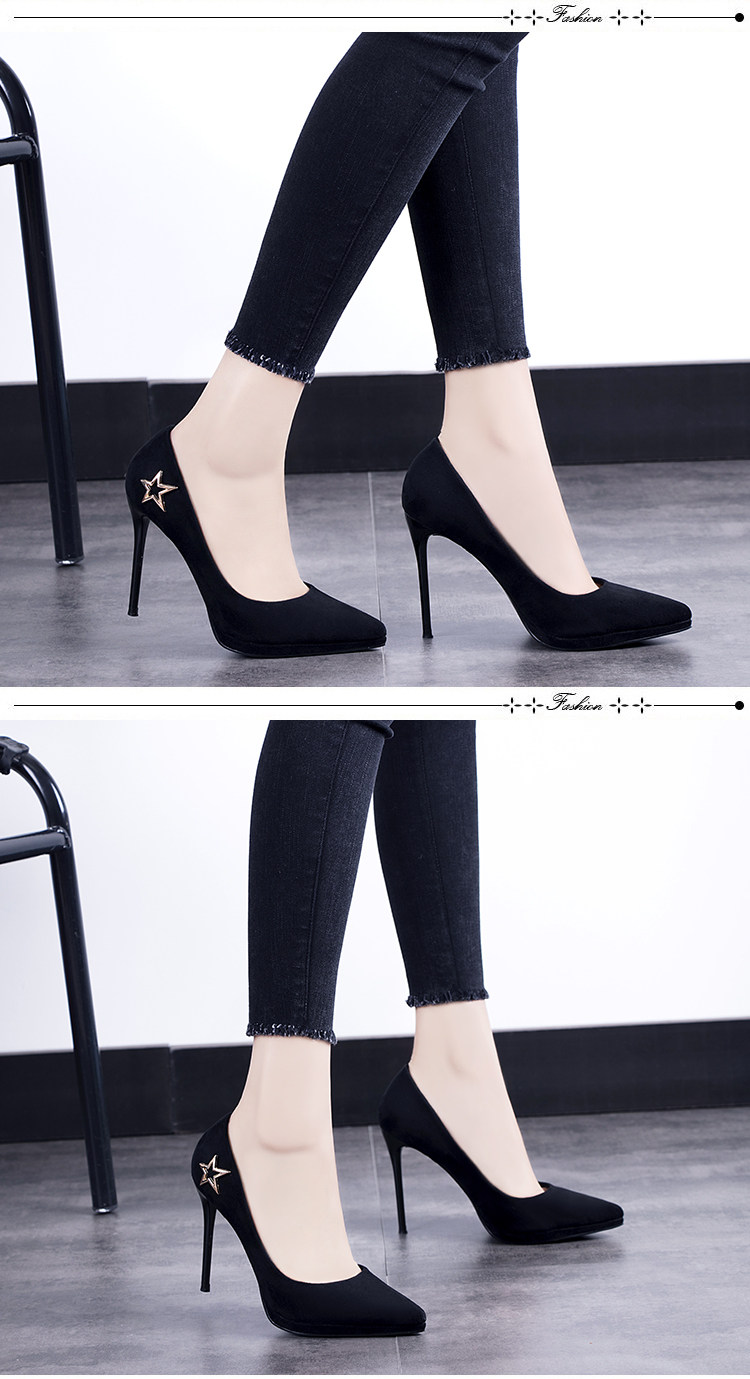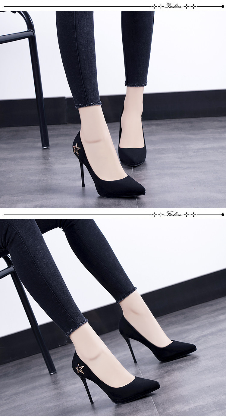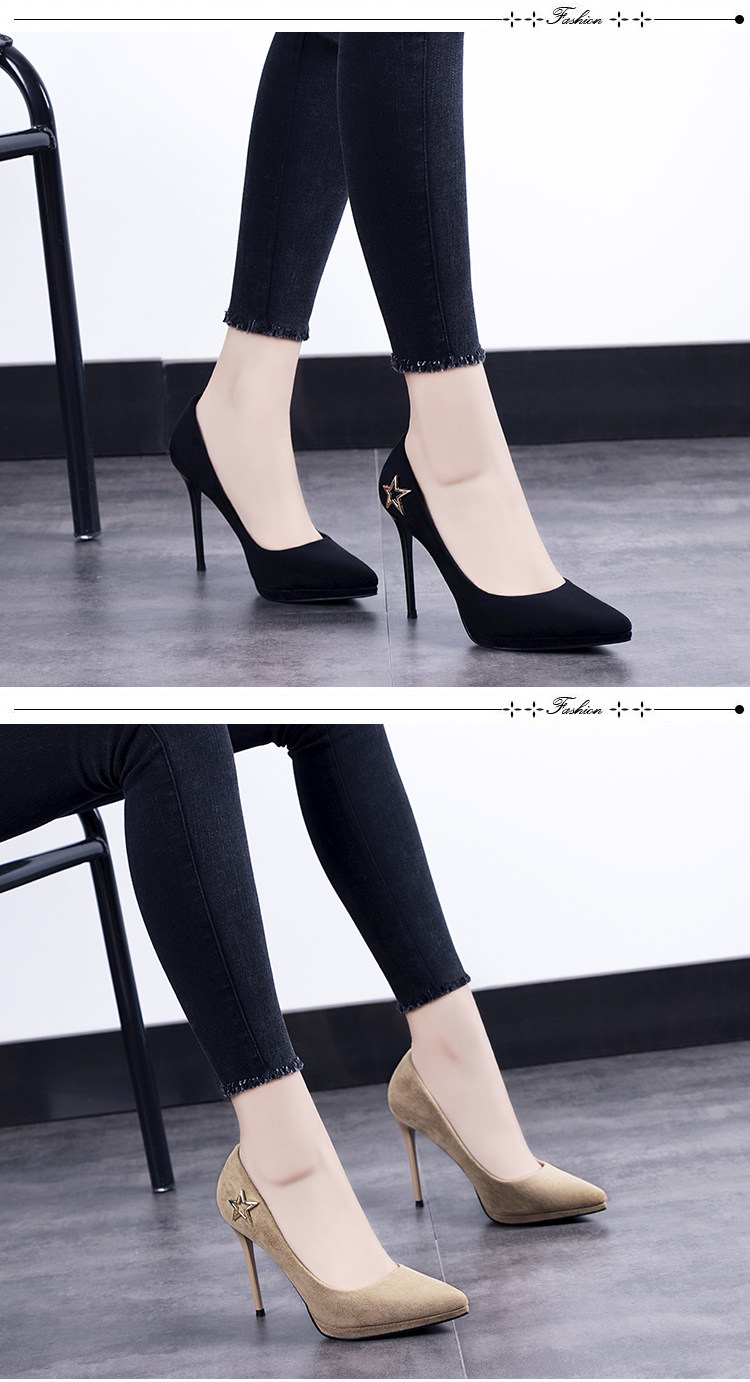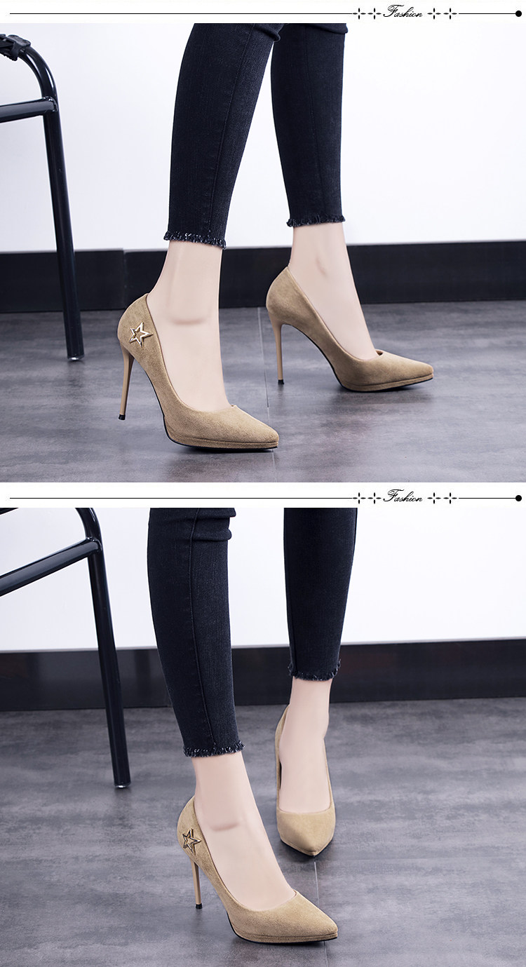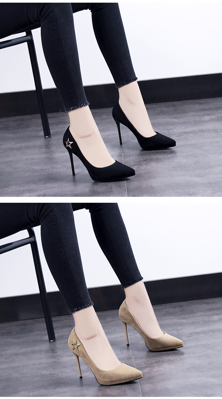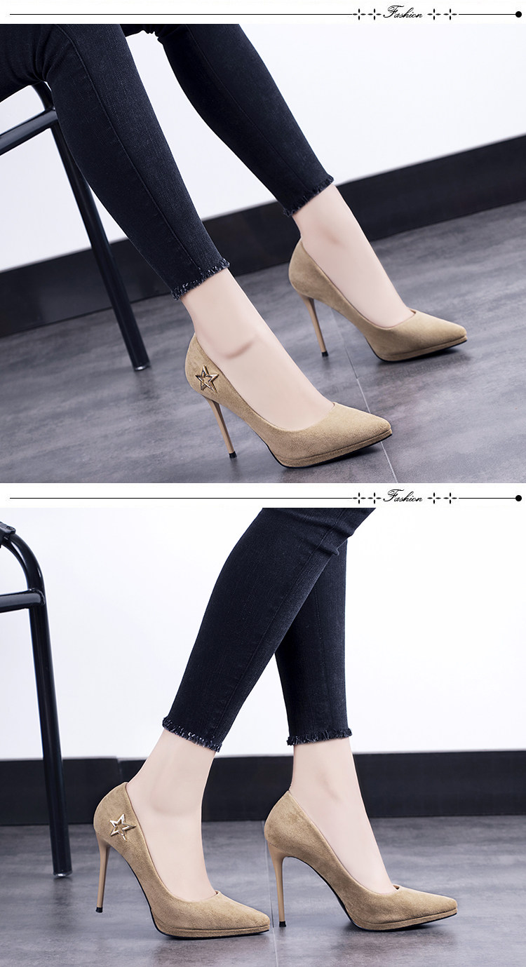 春季欧美绒面浅口单鞋尖头细跟超高跟鞋性感夜店百搭女鞋