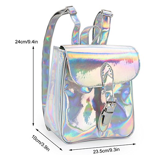 -. Feature : The design of laser reflection / Buckle straps / Inner structure: zippered pocket, mobile phone pouch, you could put your keys,coins, cellphone inside / Size: 24cm * 11cm* 25cm(9.4 "* 4.3"* 9.8") / Ideal fashion bag for shopping, travel,school and sports.