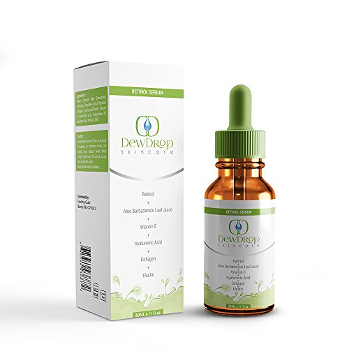 DEWDROP SKINCARE RETINOL SERUM WITH HYALURONIC ACID, VITAMIN E, ALOE LEAF JUICE, COLLAGEN AND ELASTIN. HIGH POTENCY ANTI-AGING MOISTURIZING SERUM FOR THAT YOUNGER LOOKING SKIN 30ML 1OZ