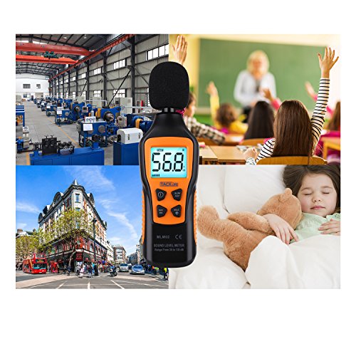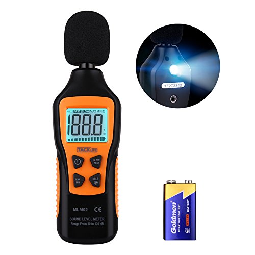 Tacklife Sound Level Meter, MLM02 Digital Decibel Meter with Noise Measurement Reader Range 30-130dBA, Max/Min/Hold Data, Fast/Slow Mode, LCD Backlight Display/Flashlight (Battery Included)