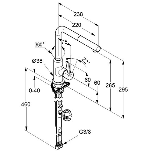 -. Feature : Geschlossener Hebel, Einlochmontage, Strahlregler M 16 x 1 / Schwenkbarer, herausziehbarer Auslauf / Durchflussmenge 8,2 l/min bei 3 bar / Eigensicher gegen Rückfließen, flexible Anschlüsse G 3/8, Schaftbefestigung
