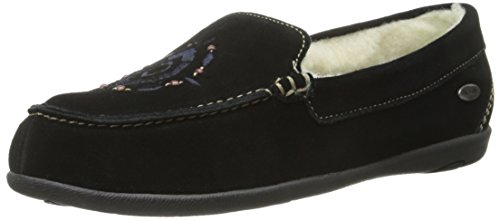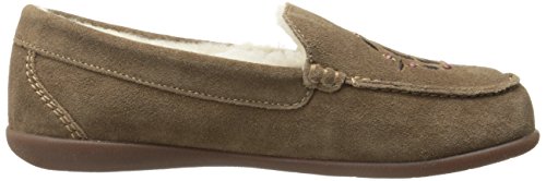 With a sophisticated moccasin profile with custom embroidered and beaded embellishment design, this comfortable and cozy wool-lined slip-on is set in stain and water-repellent genuine suede and features a removable insole for easy care. FirmCore Footbed with Dual Density Technology delivers firm support at arch and softer cushion at strike zones, while non-marking natural rubber outsole with colored pattern trend provides lasting traction and support. Material: Suede, Wool.Feature