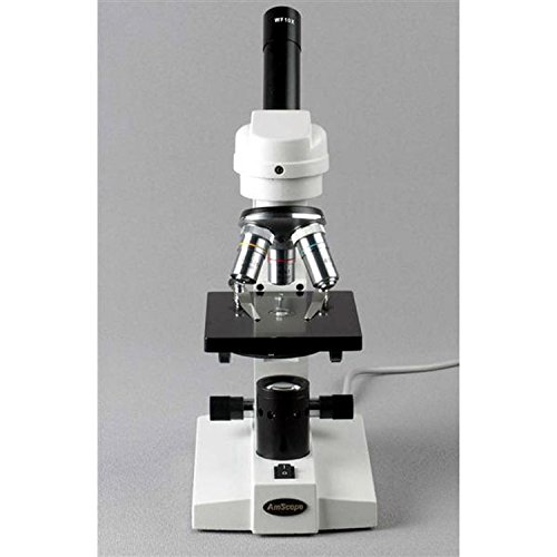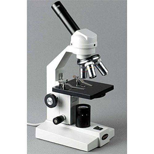 AmScope M200C-MS Monocular Compound Microscope, WF10x and WF25x Eyepieces, 40x-1000x Magnification, Tungsten Illumination, Brightfield, Single-Lens Condenser, Coarse and Fine Focus, Mechanical Stage, 110V