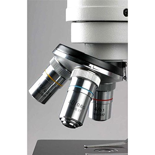 - Forward-facing nosepiece with precision-ground 4x, 10x, and 40xS DIN achromatic glass objectives provide color correction of magnified images
