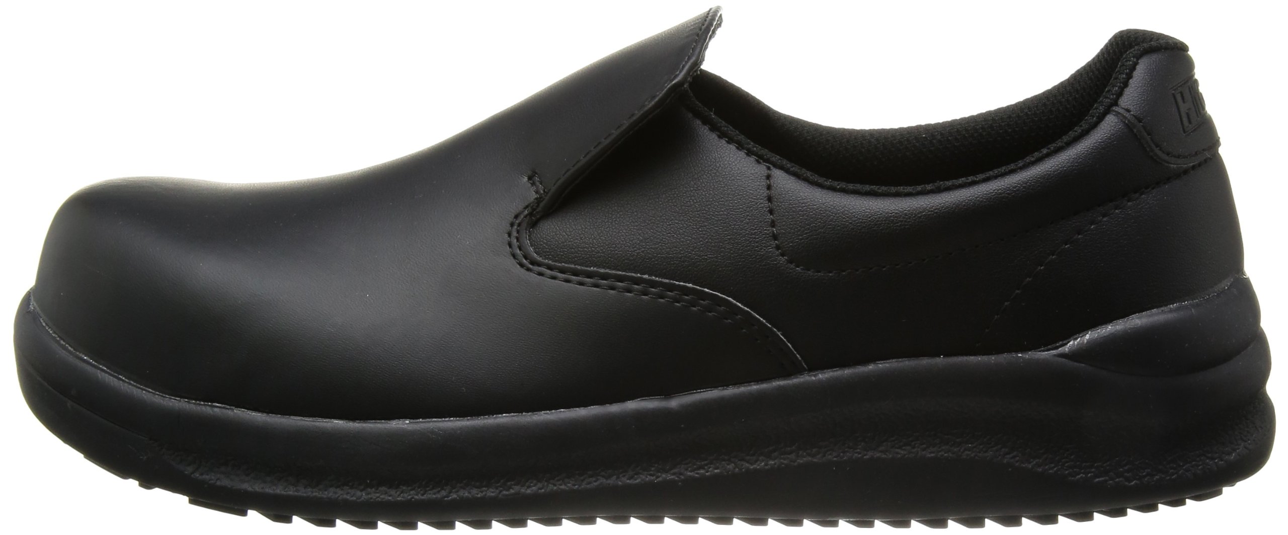 Working on a floor surface which is particularly slippery with oil and water, it has signs of three places visually recognizable on the sole of the shoe.