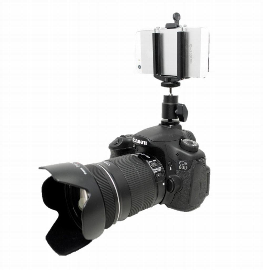 By attaching the pan head to the adapter for smartphone, we made it possible to attach to the shoe seat of the single lens digital camera.