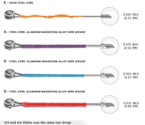 Violin Strings 3 4 and 4 4 Size, excellent choice for beginners, G-D-A-E, Ball End, Medium tension provided by ZellamZee