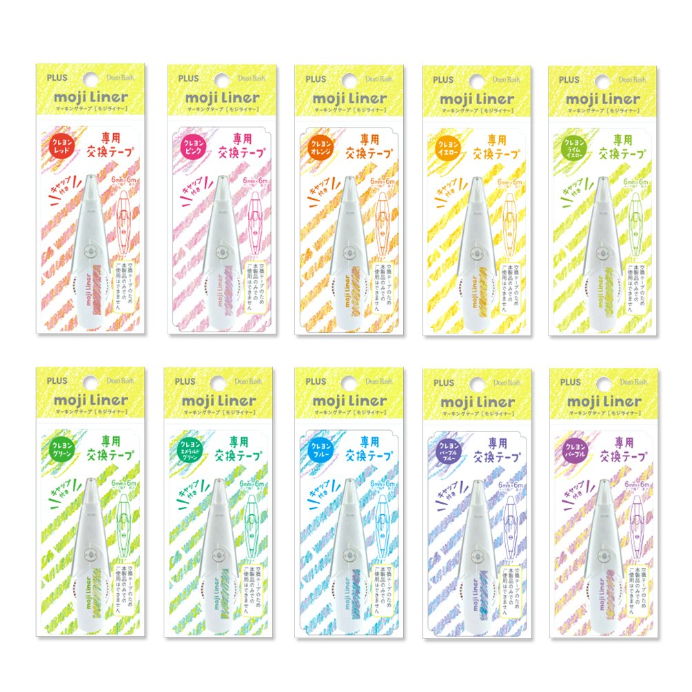 Plus moji liner crayonred marking tape (exchange tape) crayons touch with cap 10-color pack Pink Red Orange Yellow Lime Yellow Green Emerald Green Blue Purple Blue Purple